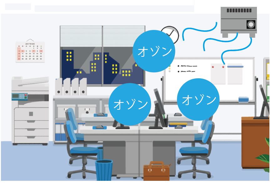 大人数が集まるオフィス内を退社後に除菌